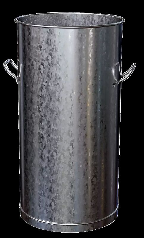 Mülltonne ohne Deckel, bestehend aus Stahlblech. Ausgerüstet mit zwei stabilen Tragegriffen. Unempfindlich gegen Nässe, Öl und grobes Füllgut. Ohne Verriegelung. Pulverbeschichtung auf Anfrage.