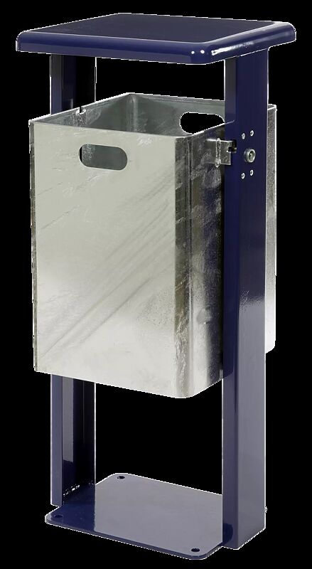 Abfallbehälter aus Stahlblech, feuerverzinkt. Ständer und Schutzdach zusätzlich pulverbeschichtet. Befestigungsmaterial nicht im Lieferumfang enthalten. Behälter mittels Dreikantschloss entriegeln, schwenken und Inhalt zum Entleeren entnehmen, 1 Dreikantschlüssel im Lieferumfang enthalten.