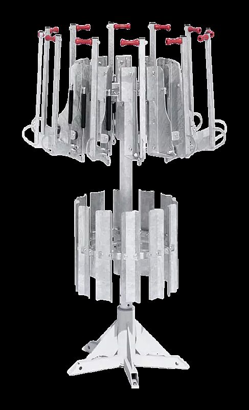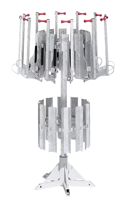 Solide drehbare Stahlkonstruktion, ohne Fahrräder Ø 1149 mm. Aufzugsarm mit qualitativ hochwertiger Gasdruckfeder. Radaufhängung aus Kunststoff in rot. Zur Aufstellung (mit Fahrrädern) wird eine Grundfläche von ca. Ø 2900 mm und eine Raumhöhe von ca. 2080 mm benötigt. Der Platzbedarf inkl. Herausnahme des Fahrrades beträgt ca. 4200 mm. Zum Aufdübeln (Kreuzfuß mit Löchern). Lieferung inkl. Nivelierschrauben. Funktion: Rad einhängen, am Sattel leicht zurückziehen, dadurch zieht die Gasdruckfedermechanik das Rad in die hängende Position. Für Fahrräder ohne breite Körbe bzw. Kindersitze, mit einem Gewicht bis 30 kg sowie einer maximalen Höhe von 1050 mm.