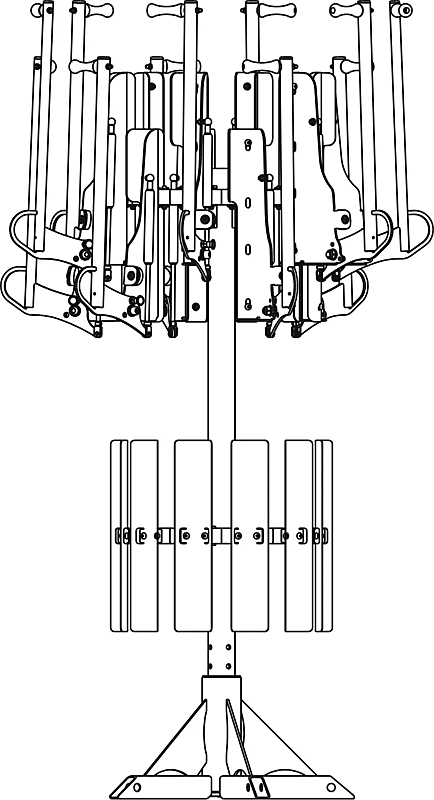 Solide drehbare Stahlkonstruktion, ohne Fahrräder Ø 1126 mm. Aufzugsarm mit qualitativ hochwertiger Gasdruckfeder. Radaufhängung aus Kunststoff in rot. Zur Aufstellung (mit Fahrrädern) wird eine Grundfläche von ca. Ø 2900 mm und eine Raumhöhe von ca. 2190 mm benötigt. Der Platzbedarf inkl. Herausnahme des Fahrrades beträgt ca. 4200 mm. Zum Aufdübeln, (Kreuzfuß mit Löchern). Lieferung inkl. Nivelierschrauben.