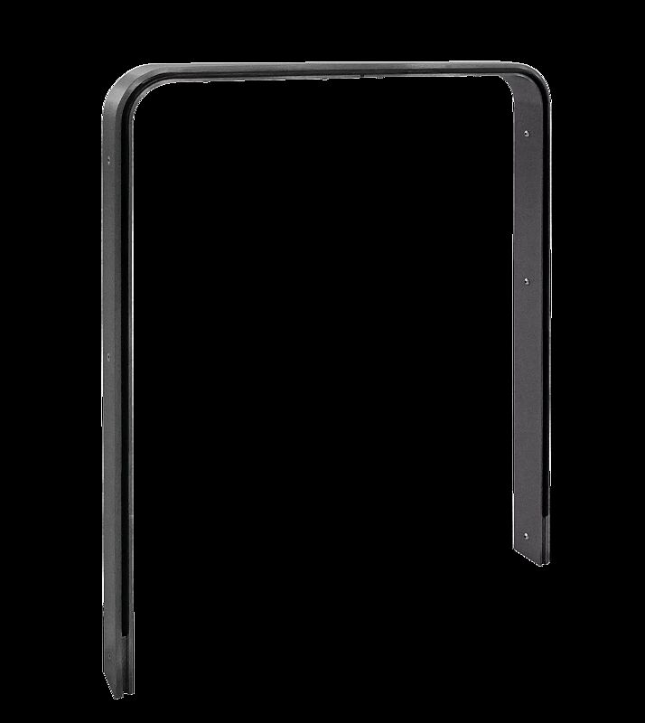 Anlehnbügel mit abgerundeten Ecken, aus Flachstahl (80 x 10 mm), mit integriertem widerstandsfähigen Kunststoffstreifen, der den Lack des Fahrrades schützen soll.