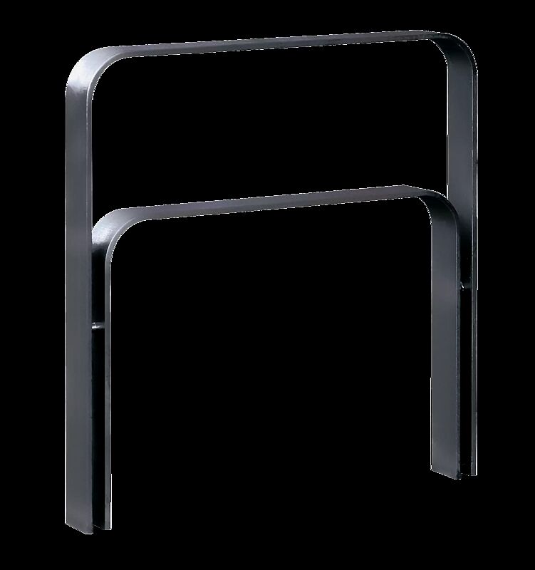 Anlehnbügel aus Flachstahl (80 x 10 mm) mit abgerundeten Ecken und Innenbügel aus Flachstahl (60 x 10 mm).