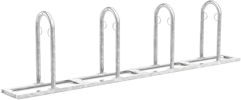 Stabile Stahlrohrkonstruktion mit integrierten Stahlösen und einem Bügelabstand von 850 mm. Vorbereitet zur Reihenverbindung und Bodenbefestigung. Lieferung inkl. Befestigungsmaterial.