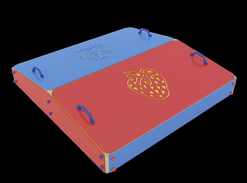 Abdeckbarer Sandkasten mit Unterkonstruktion aus Kiefernholz und einer Verkleidung aus farbigen HDPE-Kunststoffpaneelen. Alle Kanten abgerundet. Die Lieferung erfolgt zerlegt auf Palette inkl. Montageanleitung. Der angegebene Platzbedarf ist inkl. Sicherheitsbereich. Empfohlene Fundamentgrößen: 4 x Ø 500 x T 700 mm.