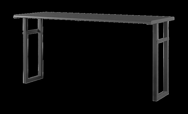 Stehtisch mit Unterkonstruktion aus Stahl. Tischauflage aus Aluminium-Rechteckprofilen. Das Aluminium ist mit einer Wärmeübertragungsfolie überzogen. Befestigungsmaterial nicht im Lieferumfang enthalten.
