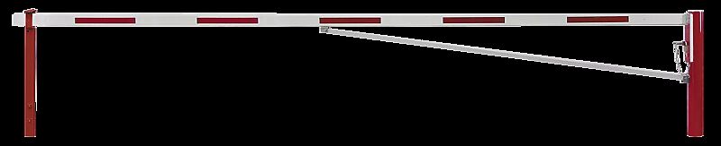 Wegesperre bestehend aus 1 Hauptstütze (Ø 102 mm) und 2 höhenverstellbaren Auflagestützen (70 x 40 mm) aus Stahl. Rechteckiger Sperrbalken (86 x 46 mm) aus Hartaluminium, drehbar gelagert mit Antisitzschutz. Zusätzliche Stabilisierung durch eine Diagonalstrebe aus Aluminium. Auflagestützen sind höhenverstellbar (+ 100 / - 100 mm). Einfaches und leichtes Drehen mittels PTFE-Lager.