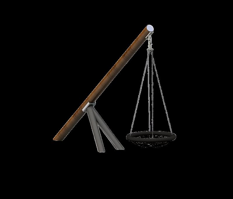 Nestschaukel bestehend aus einem langen Balken (Ø 89 mm) mit zwei kurzen Stützpfeilern aus wiederverwendbarem Edelstahl V2A. Balken pulverbeschichtet, zusätzlich mit witterungsbeständigen Transferdruck in Holzoptik. Schaukelnest (ca. Ø 1000 mm) mit Außenring aus schwarzem Polyestertau, Sitzfläche aus geflochtenem Seilmaterial und Ketten aus Edelstahl V4A, 8 mm. Optional sind weitere Ausführungen möglich. Aufgrund der speziellen Aufhängung an nur einem Punkt, kann das Schaukelnest sich in verschiedene Richtungen bewegen. Zum Aufdübeln bei -400 mm auf ein Betonfundament (bauseits) bzw. auf ein vorgefertigtes Betonfundament mittels Gewindestangen. Vorgefertigtes Betonfundament auf Anfrage erhältlich. Gerät geprüft nach Euronorm EN 1176. Anlieferung erfolgt zerlegt auf Palette inkl. Montageanleitung (Entladen bauseits). Der angegebene Platzbedarf ist inkl. Sicherheitsbereich. Empfohlene Fundamentgrößen: 3 x L 1100 x B 1100 x T 500 mm.