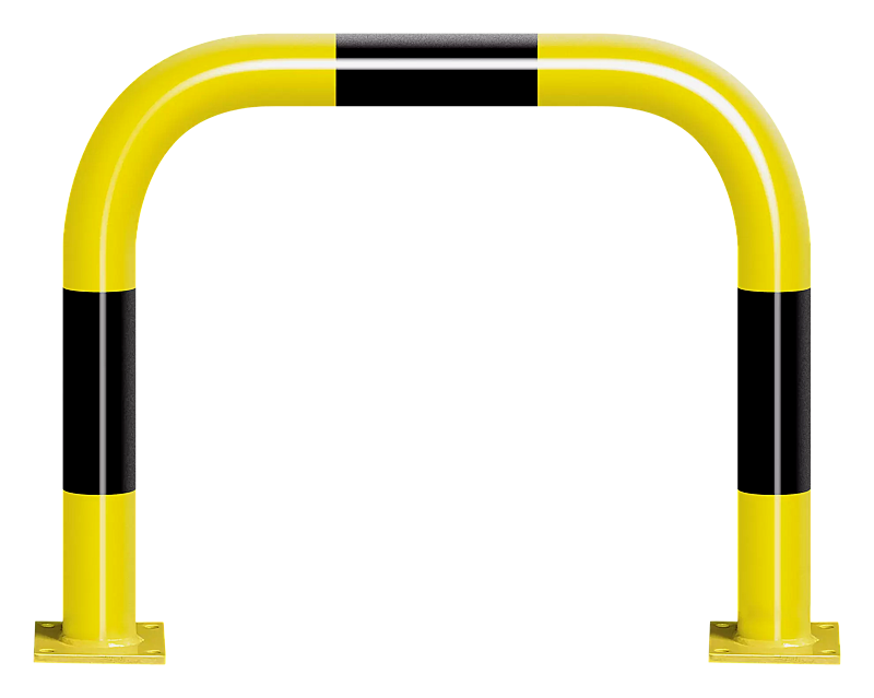 Rammschutzbügel aus Stahlrohr (Ø 76 mm), Wandstärke 3 mm. Zum Aufdübeln mit Bodenplatte (160 x 140 mm).