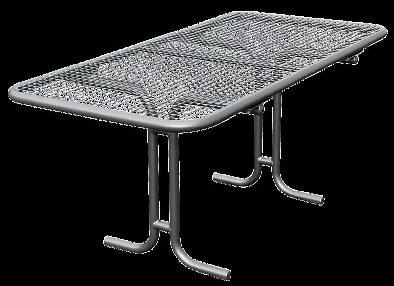 Tisch mit Grundrahmen aus Stahlrohr Ø 43 mm. Tischauflage aus Drahtgitter Raster 30 x 30 mm, Drahtstärke 4 mm. Auf Anfrage auch komplett in Edelstahl erhältlich. Anlieferung erfolgt auf Palette.