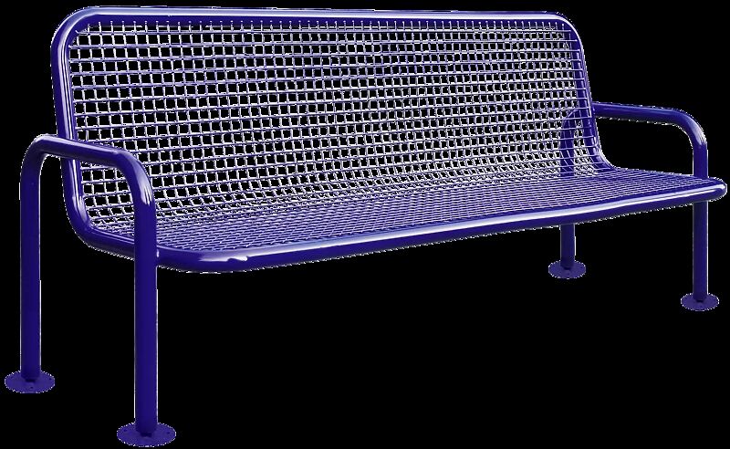 Sitzbank (2-Sitzer) mit Grundrahmen und Armlehnen aus Stahlrohr Ø 43 mm sowie erhöhter Sitzebene. Sitzfläche und Rückenlehne aus Drahtgitter, Raster 30 x 30 mm, Drahtstärke 4 mm. Befestigungsmaterial nicht im Lieferumfang enthalten.