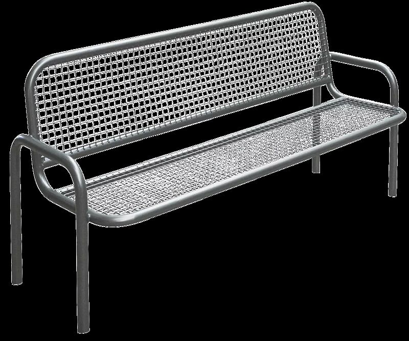 Sitzbank (2-Sitzer) mit Sitzfläche und Rückenlehne aus Drahtgitter 30 x 30 mm, Drahtstärke 4 mm, eingefasst in Grundrahmen Ø 43 mm, körpergerecht geformt. Mit erhöhter Sitzebene.