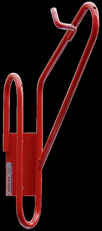 Stabile Stahlkonstruktion aus Rundrohr (Ø17mm) mit angeschweißter Montageplatte (70x200mm). Für alle Reifenbreiten geeignet. Haken mit felgenschonender Kunststoffummantelung. Pulverbeschichtet in RAL 3020 verkehrsrot. Lieferung ohne Wandbefestigungsmaterial.